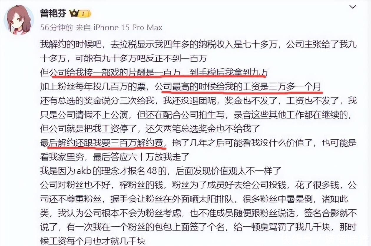 百万片酬到她手里只有9万,每月收入3万块都没有,想解约很难,要先给300万违约金。